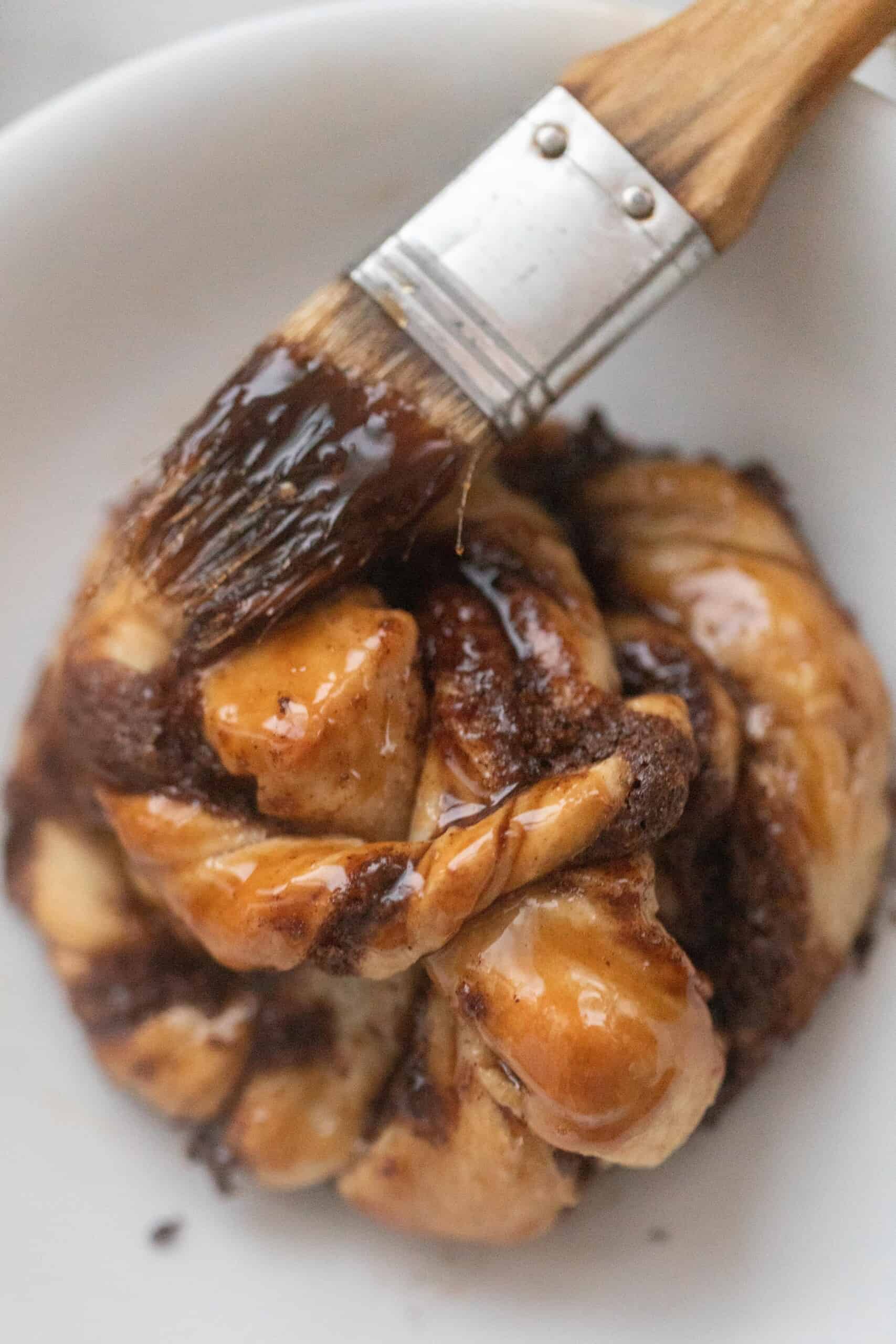 Generously brush your syrup over the warm cinnamon buns.