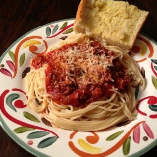 Brown meat and sausage, and add diced onions until meat is browned and onions are clear. Combine tomato sauce, tomato paste, and all seasonings/spices in a large saucepan on the stove. Start the heat on medium until it bubbles, and reduce heat to low/medium low. Keep covered, except when stirring. About every 30 minutes, I remove the lid and stir, to prevent burning/sticking to my sauce pot. I usually let it simmer on low for about 4 hours. When the sauce is ready, I start boiling my water to make the PLUS Angel Hair Pasta. While waiting for the water to boil, I butter some Italian Bread, and sprinkle garlic salt on top. I bake it in the oven while the pasta is boiling, so they're ready to serve at the same time. When I plate the spaghetti, I add some freshly grated Parmesan Cheese on top, then serve!.