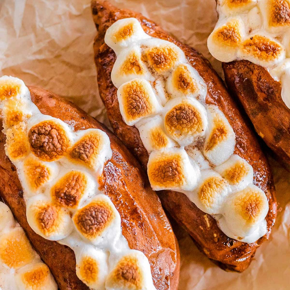 Twice Baked Sweet Potatoes are like a cozy hug in food form—creamy, slightly sweet, and bursting with butter, cinnamon, brown sugar, and marshmallows. They are the perfect Thanksgiving side dish that everyone will go crazy for!
