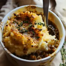 This Vegan French Onion Shepherd’s Pie is a comforting, plant-based twist on the classic dish, featuring a rich caramelized onion and lentil filling topped with a creamy cauliflower-potato mash. It’s hearty, satisfying, and packed with umami flavors, making it the perfect dish for cozy dinners or meal prep. Plus, it’s gluten-free, dairy-free, and easy to make ahead!