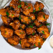 Remove them from the oven and using a fork, spoon, or tongs, dunk each cauliflower wing in the teriyaki sauce or whichever sauce you are using. Bake one more time for about 5 minutes.